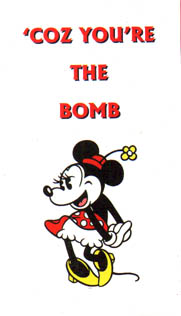 Is your father a terrorist? 'Coz you're the bomb. I really wanna know... does crap like this actually work? Are there women out there who actually find lines like this amusing? Because I can't imagine anyone ever wanting to recieve this card. And if that wasn't enough, the girl who gets this card has to put up with the picture of Minnie Mouse from the 1940s, just to remind her just how much of a bomb she is.